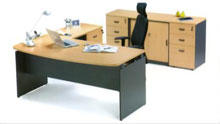 Ensemble de Bureau Coul : Beech * Bureau 1.50X0.80 Pied metal * Top de retour 0.90X0.50 * Caisson porteur 3T F/Central * Table convivialite Dim : 0.90X0.80 pied métal